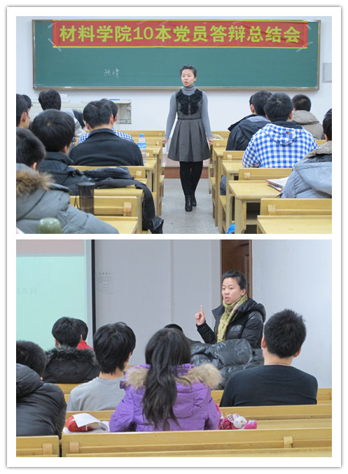10本学生党支部全体党员进行了全面的工作总结,会议分为党员答辩总结和2013年度重点培养对象推选答辩两个内容,院学工办主任、10本年级主任付影老师参加了会议,并与全体党员和积极分子做了交流。