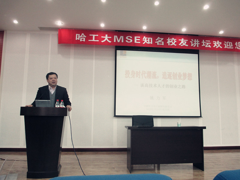 ,获得了工学的学士、硕士和博士学位。为了了解世界最好的芯片是怎么做出来的、日本的高端制造业是如何运作和管理的,于1997年在日本博士毕业后,就职于世界500强企业Honeywell公司从事半导体材料方面的科研、生产、管理、销售等工作,2004年出任该公司电子材料事业部大中华区总裁,并逐步成为世界范围内掌握超高纯金属及电子材料核心技术的著名专家。此次讲座,姚力军博士与广大学子交流了自己的成功创业经验,介绍了企业发展的几个阶段,提出“始终将人才培养放在首要位置”的公司发展观念,同时还倡导“同创业、共成功”的大学生自慰。