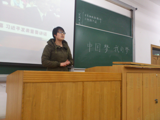 在大家认真且积极地阐述对中国梦的理解和认识中,周杨同学认为中国梦可以激励中国人民团结一心,发扬民族精神;张璐同学认为合理进行职业规划,实现个人理想就是实现中国梦的一种表现;赵晓丽同学的着眼当下、解决社会弊端就是实现人民幸福的中国梦;于文龙同学结合自身拥有好的前途和爱情也道出了不少同学的梦想;吴盼、王晋、杨雪飞等同学认为中国梦的提出能够带领每一位中国人反思自我,聆听内心最真的声音——我的梦想是什么?刘家军同学也认为中国梦的提出从侧面反映了社会现状——很多人对于自己的梦想没有明确的概念。因此,我们必须解决中国现在面临的各种社会问题,才有可能实现中国梦。