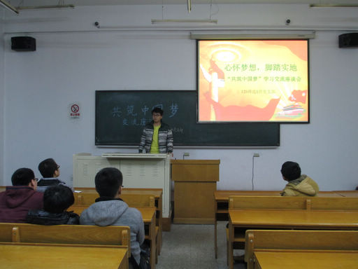 12硕铸造1班党支部于近日在诚意114召开了题为心怀梦想,脚踏实地——“共筑中国梦”的主题座谈会,旨在进一步学习、领会十八大精神,思考、探讨中国梦的内涵及要义,在实践中坚定理想信念,为构筑中国梦而努力。