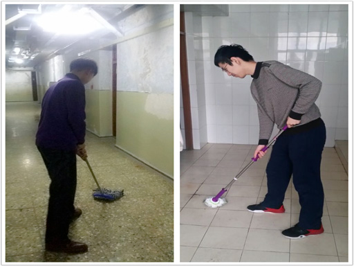 发展对象培训班14级学员分为两组在学生二公寓与四公寓开展了公寓清洁志愿服务工作。