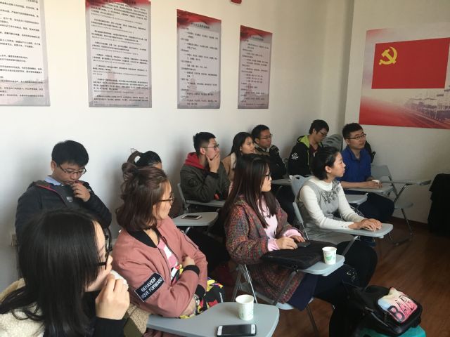 首先毕永琛同学就习近平总书记十九大开幕报告做了简要的总结: 过去我党经历的五年肯定是极不平凡的五年,外交方面无论是人民币国际化、一带一路建设还是中国标准的对外输出都使中国的大国地位逐步奠定;对内人民的生活保障体制逐步健全,法制建设可圈可点。尤其对习近平总书记报告中提出的国内主要矛盾的转变,两个建设阶段的提出做了重点的概括。随后大家一起观看了一个关于中国建设的纪录片,其中说的“中国人关注历史但是从来不拘泥于历史”引起了党员同志们的共鸣.