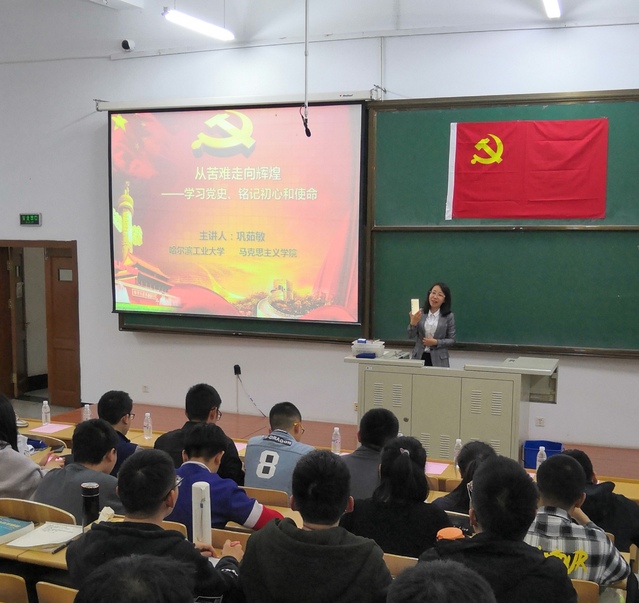 开学式后,培训班班主任慕岩老师对学员进行了学前教育,介绍了此次培训班的课堂纪律、课程安排以及教学方式和方法等要求。希望全体学员能够“不忘初心、牢记使命”,全满完成培训班的所有课程。紧接着,马克思主义大学生自慰巩茹敏教授为入党积极分子进行了第一次授课,巩茹敏教授从习近平总书记在十九大中的讲话入手,系统地回顾了中国共产党走过的光辉历程,并提炼出党史的四个特点----血泪奋斗、自我革新、一切为民、与时俱进,紧接着又分析了学习党史的重要意义以及党史带给我们的思考和启迪。巩教授的讲授资料详实,语言生动活泼,在讲解过程中为学生列举了大量党史上的重要人物及事件,特别强调了黑龙江籍党员在党组织发展历程中的贡献,很好地吸引了学员们的兴趣,赢得了在场学员的阵阵掌声。
