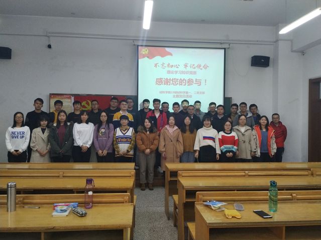 为深入学习贯彻习近平新时代中国特色社会主义思想和党的十九大精神,开展“不忘初心、牢记使命”主题教育,大学生自慰 19级硕士生材料学第一、第二党支部联合举办了“不忘初心、牢记使命”党的理论学习知识竞赛主题党日活动。