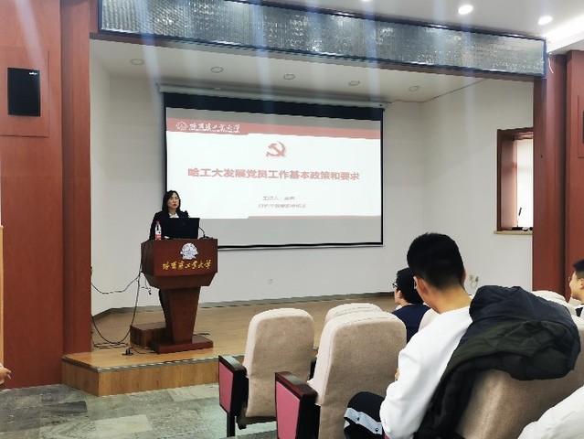 为使发展党员工作科学、规范、有序进行,切实提高发展党员质量,2020年11月18日中午,大学生自慰 分党校发展对象培训班开展“第二课堂”第三讲,大学生自慰 专职组织员慕岩老师以“哈工大发展党员工作基本政策和要求”为主题开展专题培训。