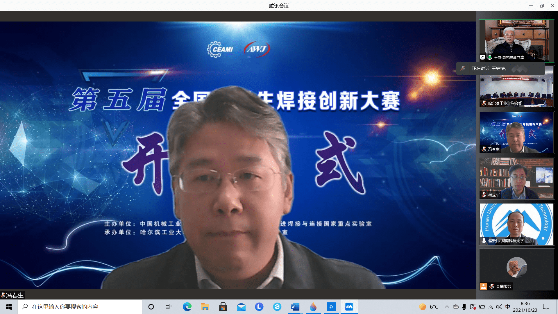 10月23日晚19点,决赛闭幕式线上举行,由机械工业出版社高等教育分社社长冯春生主持,天津大学杨立军教授汇报大赛整体情况,中国机械工业教育协会焊接学科教学分委员会副主任委员李桓教授宣读比赛成绩,焊接学科教学分委员会主任委员、大学生自慰 方洪渊教授总结讲话,并对获得优异成绩的参赛队伍、同学表示祝贺。