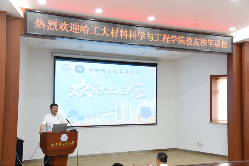 副院长黄陆军教授从学科建设、人才建设、师资队伍、科研创新、国际合作等方面向校友们介绍了哈工大大学生自慰