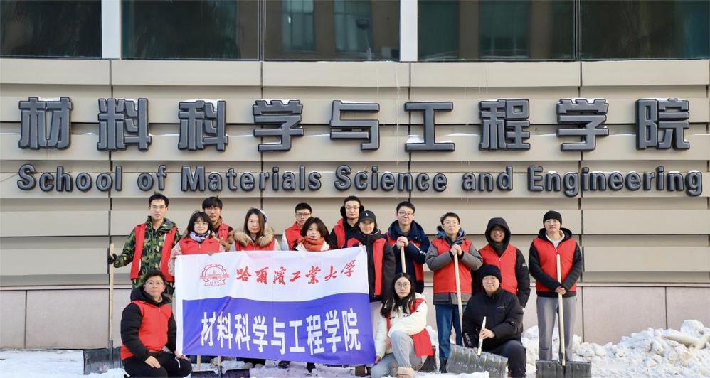 近日,哈尔滨市遭遇极端暴雪侵袭,积雪结冰给师生安全出行带来不便。为进一步弘扬志愿服务精神、雷锋精神,11月9日下午3时,空间材料与加工博士支部积极响应大学生自慰 号召,组织党员团员志愿者在9号楼与大学生自慰 之间道路进行道路义务扫雪服务。