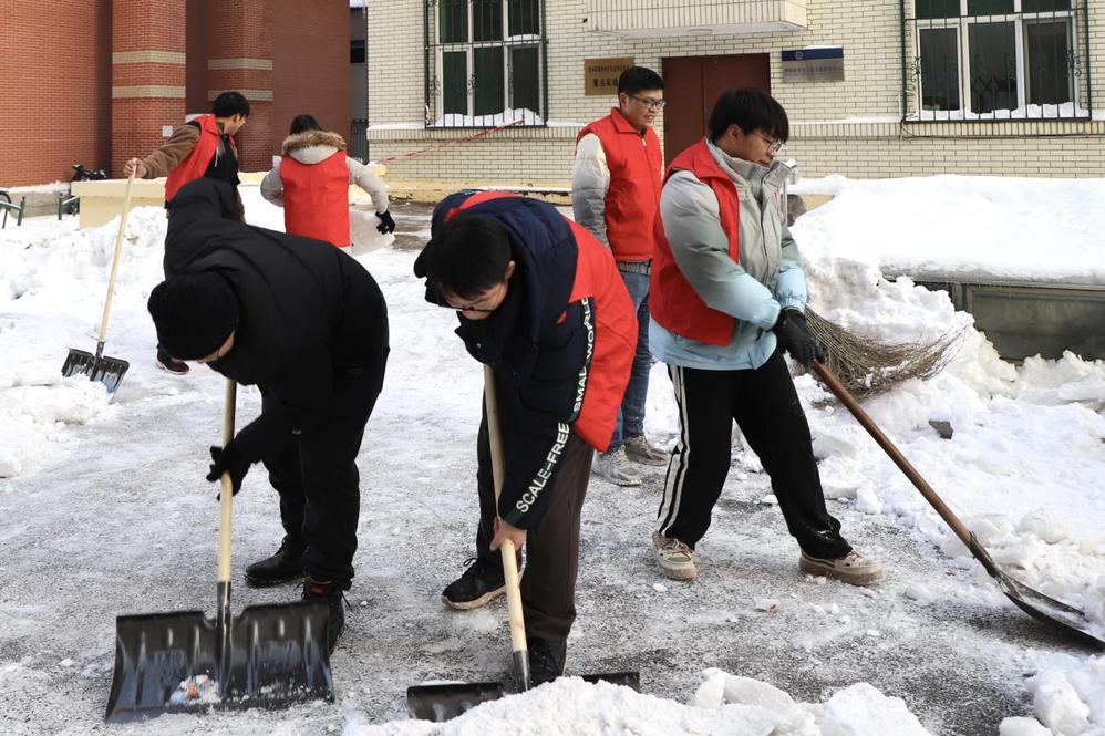 党员志愿者以实际行动展现了志愿服务的精神和担当,让师生在初冬感受到了浓浓暖意。大家密切配合,团结协作,用热情融化冰雪,经过一个小时浴“雪”奋战,为师生清扫出一条“放心路”。志愿者们团结一心,众志成城,发扬了“规格严格,功夫到家”的校训传统,以实际行动践行了“奉献、友爱、互助、进步”的志愿精神,展现了青年的担当。