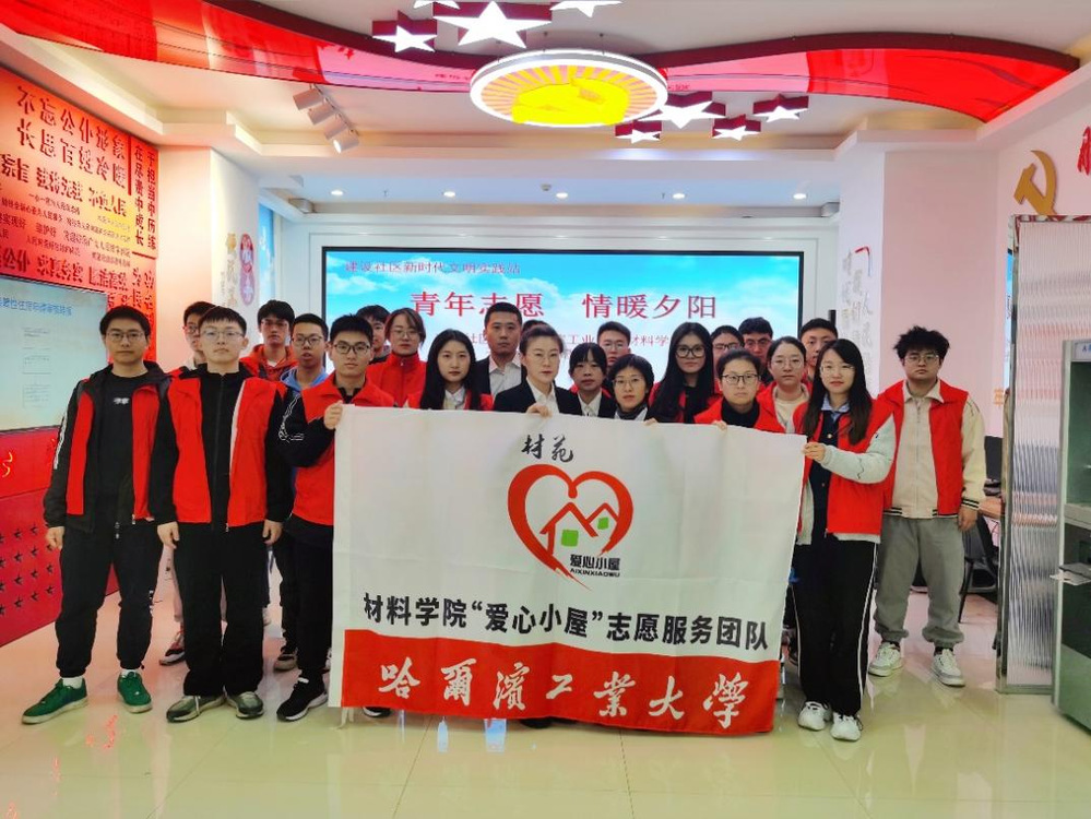 “爱心小屋”志愿者在社区工作人员的带领下,来到建设社区独居老人的家中。志愿者首先为老人送上生活物资和节日祝福,帮助老人收拾家务并检查了插座、电线、燃气灶等用电用气设备安全,与老人聊天,了解老人的日常生活情况和健康状况,调研老人目前的主要需求。老人表示子女都在外地工作,见到年轻的孩子们特别温暖。走访调研结束后,王春然同学在社区会议室以“党的领导下的哈工大”为题讲述了哈工大一步一步发展的百年历程。通过王春然同学的分享,社区居民对哈工大的校史校情有了更深的了解。