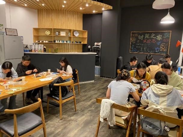 5月24日,在材料楼314举行了流沙画制作活动。活动现场准备了流沙画的制作材料和防护措施,同学们在制作流沙画的过程中团结合作,互相改进制作方法,提高效率。通过将流沙在液体中的流动,形成独特而精美的画面,既舒缓了压力,也获得了成就感。