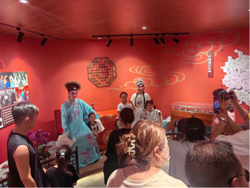 通过调研,实践团成员发现各地的红色音乐与地方特色音乐正积极通过融入当地旅游业,借助互联网提高自身生命力。以安徽省合肥市对庐剧的传承与发扬为例,通过建成“庐韵芳华”庐剧戏曲文化体验馆,作为当地地区特色景点,通过图文介绍,多媒体设备互动体验等形式让游客充分参与,让更多的年轻人了解和喜爱庐剧。
