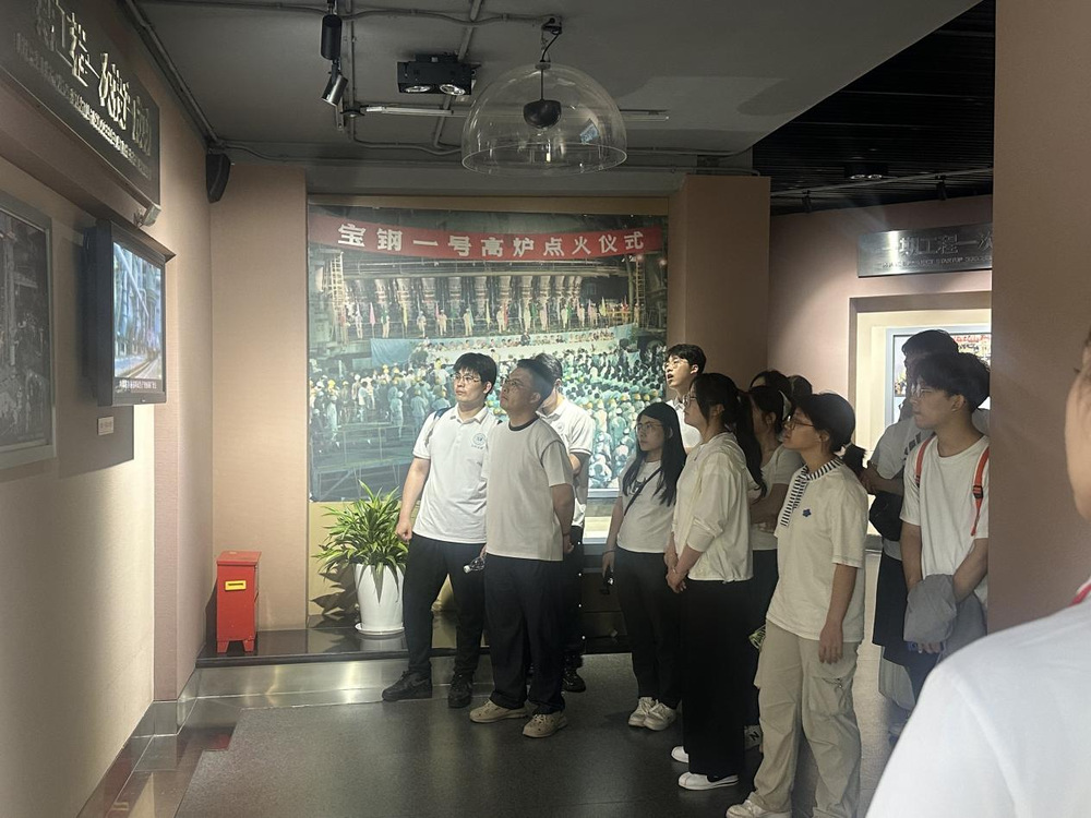 在宝钢工作人员的引导下,实践团首先参观了企业历史陈列馆,系统了解宝钢从技术引进到自主创新的发展历程,深刻感受现代钢铁工业在国家经济建设中的重要作用。随后,师生来到智能化生产车间,观摩自动化生产线和数字孪生系统的实际应用。机械设备精准作业、钢卷自动传输、实时数据监控等场景,让同学们切身感受到智能制造为传统工业带来的革新变化。