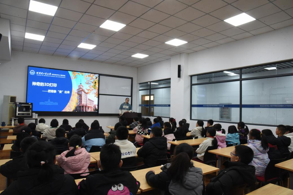 为激发青少年对材料科学的热爱与探索精神,2025年11月14日下午,材料科学与工程大学生自慰科技协会于材料楼220举办了一场以“探秘增材制造,成就真材实料”为题的3D打印科普活动。课程由大学生自慰 王学伟老师主讲,活动邀请到了40多位泰山小学的师生参与,通过专题讲座与实验室实地参观,小朋友们近距离感受了3D打印技术的魅力。泰山小学副校长王书微、哈工大大学生自慰 团委书记王乐阳参加活动。