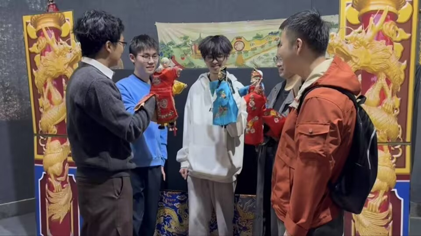 1月27日,实践团先后走访布袋木偶戏与高跷民俗传承人工作室,学习操控技艺与表演方法,并尝试自主编排演绎木偶戏片段、体验踩高跷等活动。当晚,团队还举办记忆合金科普讲座,结合趣味实验向青少年普及材料科学知识,激发其科学兴趣。